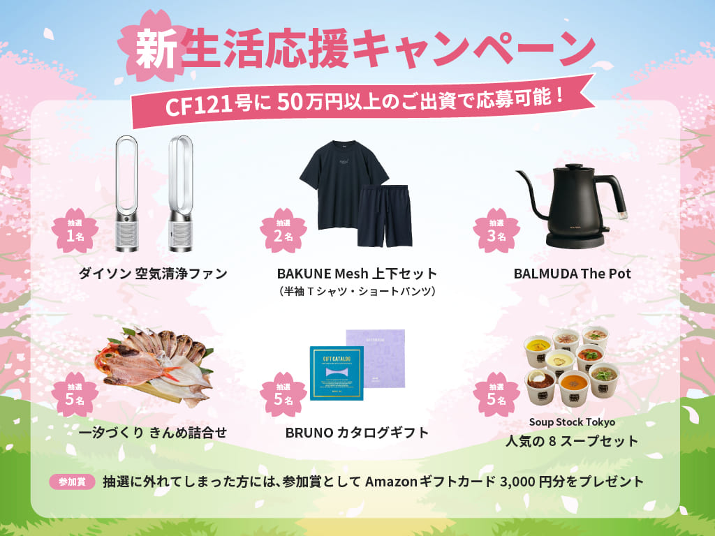 2026年3月27日15:00お申込みには投資家登録が必要になります。予め、会員登録・投資家登録をお済ませのうえ、お申し込み後にファンド専用口座に出資金をお振り込みください。