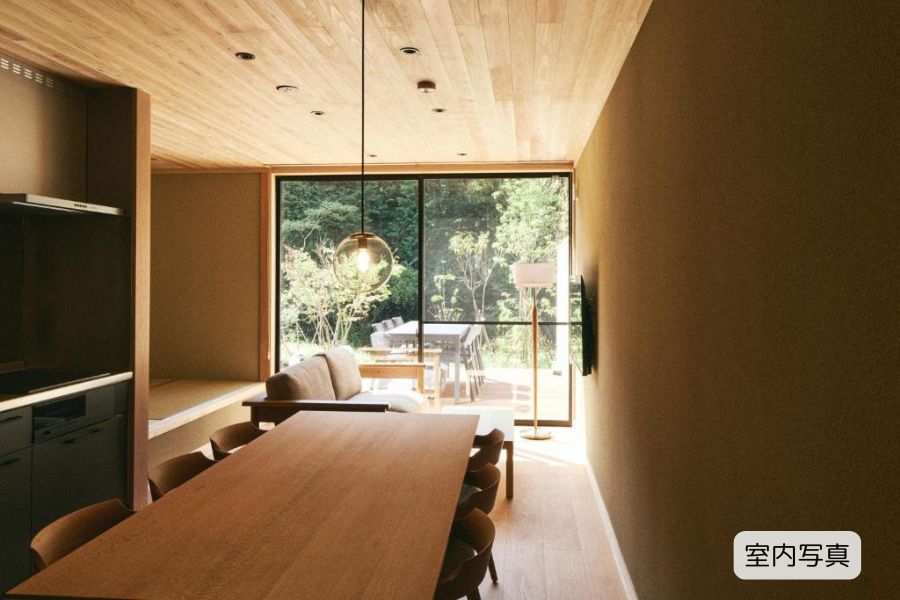 専用デッキと南側庭を備え、滞在型・体験型宿泊に適した空間設計としています。
