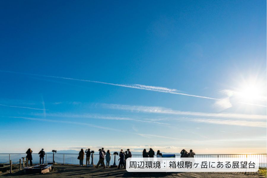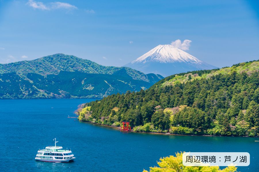 対象物件は芦ノ湖エリアに位置し、箱根神社、箱根関所跡、箱根駒ヶ岳ロープウェイなどの主要観光スポットに近接しています。