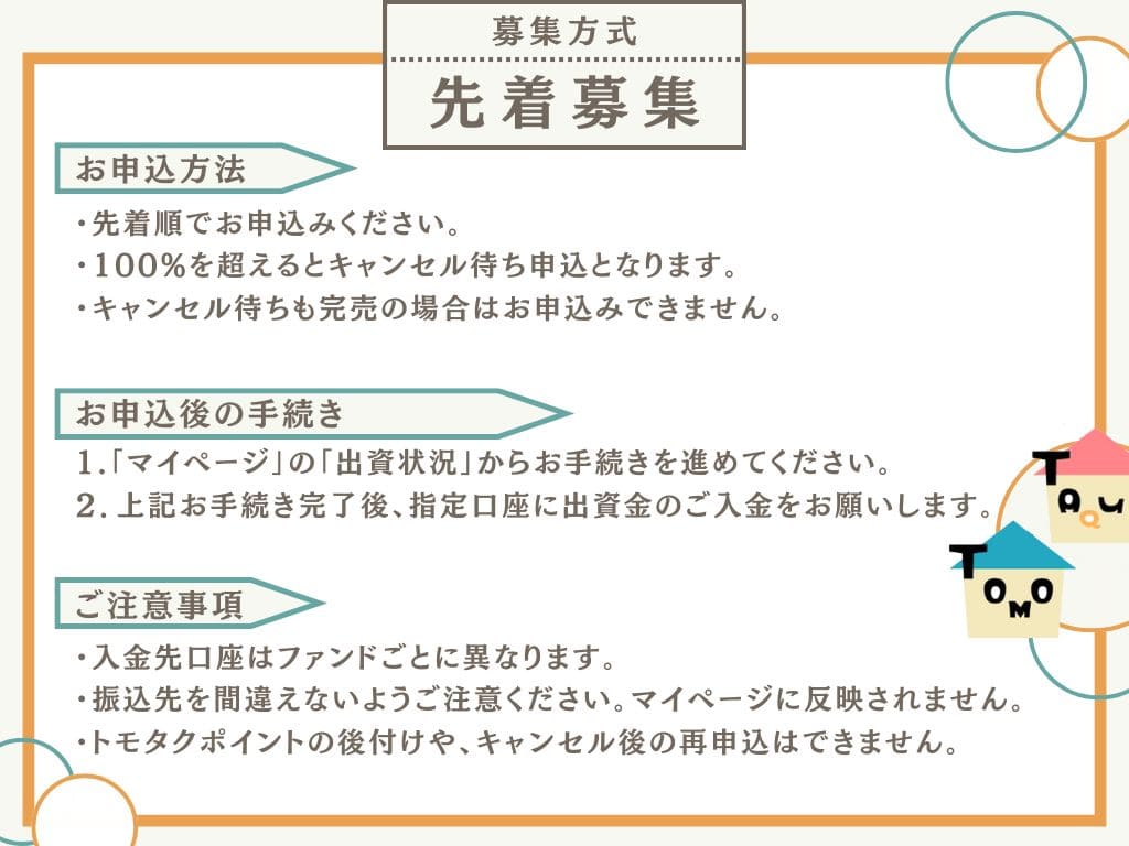 抽選募集ファンドの場合、募集状況によっては募集終了日時が早まる可能性がございます。