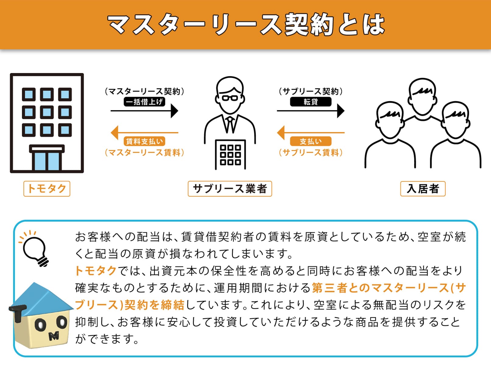 | その他 | インカムゲイン型 優先劣後 マスターリース契約 出資上限あり 先着順 毎月配当 |