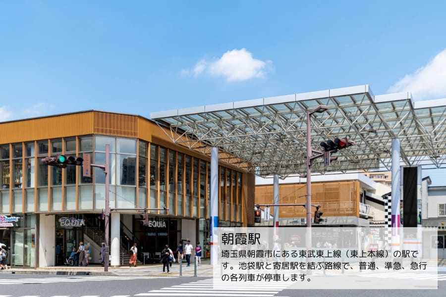 朝霞市は、埼玉県南部に位置し、東京都心へのアクセス性に優れたベッドタウンとして発展してきたエリアです。東武東上線「朝霞」駅からは池袋駅までダイレクトアクセスが可能であり、都心への通勤や通学者を中心とした居住需要を有しています。