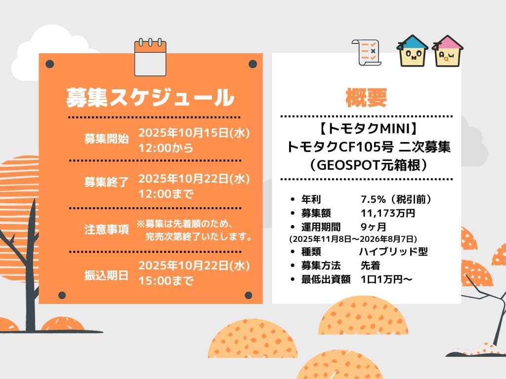 ■ 【トモタクMINI】トモタクCF105号(GEOSPOT元箱根)ファンド概要