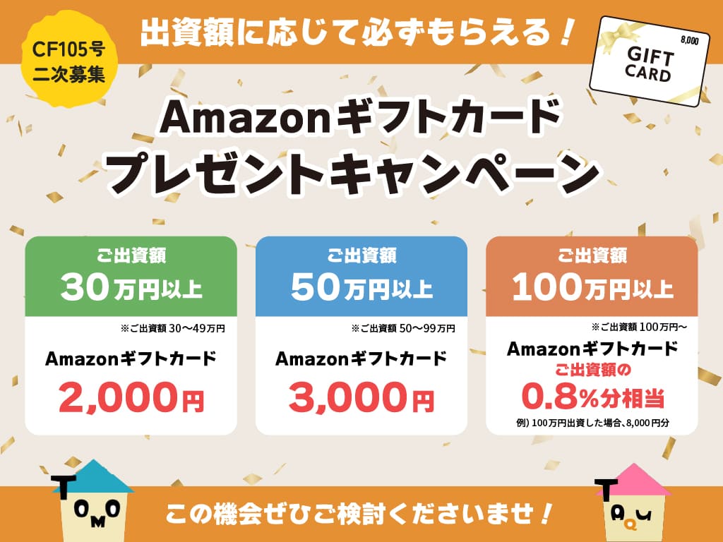 出資額に応じて必ずもらえる!Amazonギフトカードプレゼントキャンペーン