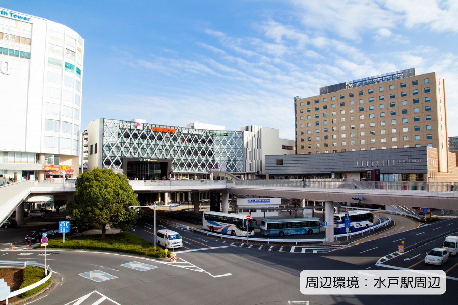 駅周辺には商業施設・オフィス・行政機関が集中。常磐自動車道「水戸IC」や北関東自動車道へのアクセスも良好で、県内外への移動がスムーズです。また、東京方面へは特急利用で約70分と通勤圏内であり、首都圏からの移住・転勤需要も一定数見込まれます。