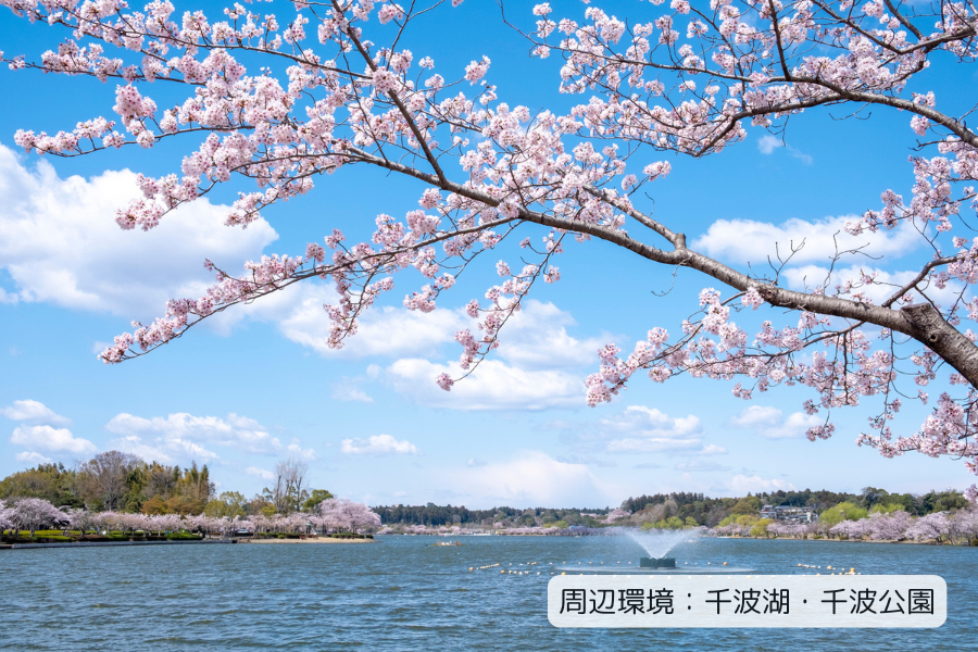千波湖:市街地中心に位置する水辺のオアシス。ジョギングや散歩コースとしても親しまれています。