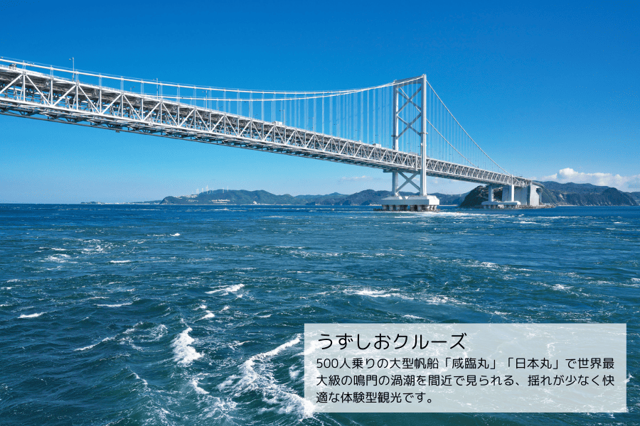 なかでも、世界的にも希少な自然現象である鳴門海峡の渦潮をはじめ、慶野松原や灘黒岩水仙郷など、年間を通じて多様な観光資源に恵まれており、国内外から安定した来訪者を集客できる高い観光ポテンシャルを有しています。