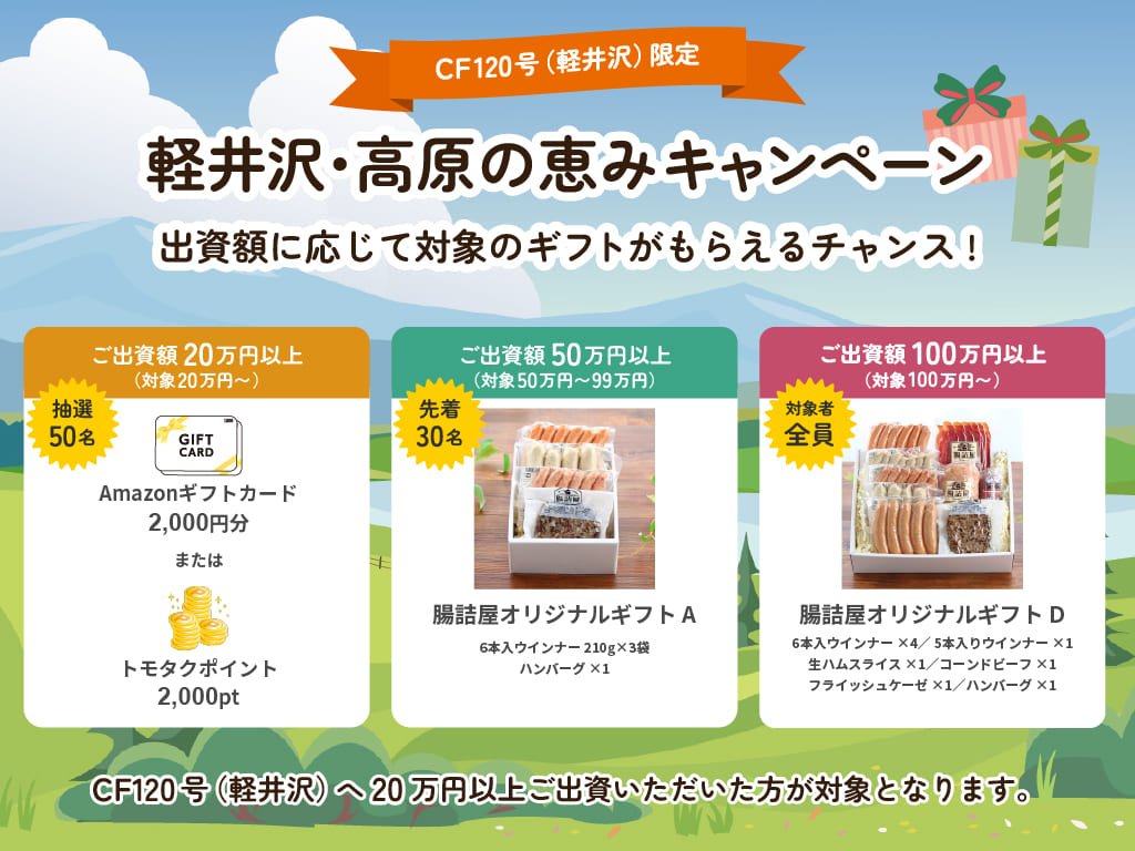 さらに、本ファンドに20万円以上ご出資いただいた方の中から抽選で、