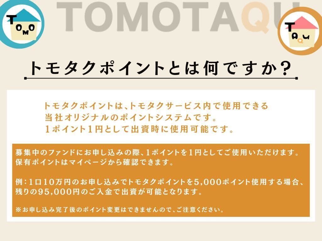 トモタクは、2020年8月4日に不動産特定共同事業の許認可を取得しサービスを開始しました。